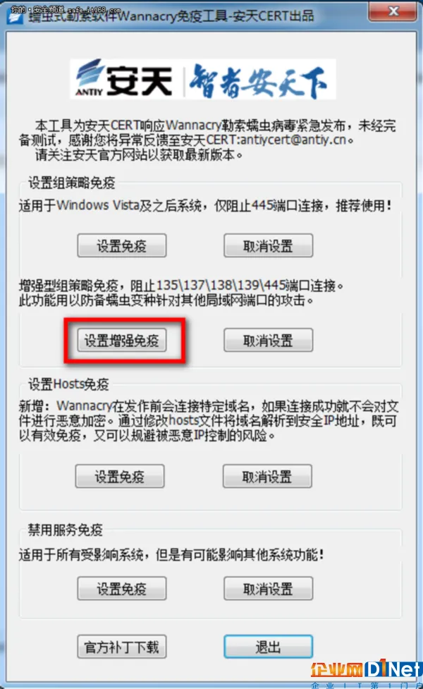 安天免疫下载地址:http://www.antiy.com/response/wannacry/Vaccine_for_wannacry.zip。