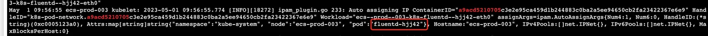 Orchestrator:"k8s", Workload:"", Node:"ecs-prod-003", ContainerID:"", Pod:"fluentd-hjj42", Endpoint:"eth0", IPNetworks:[]string{