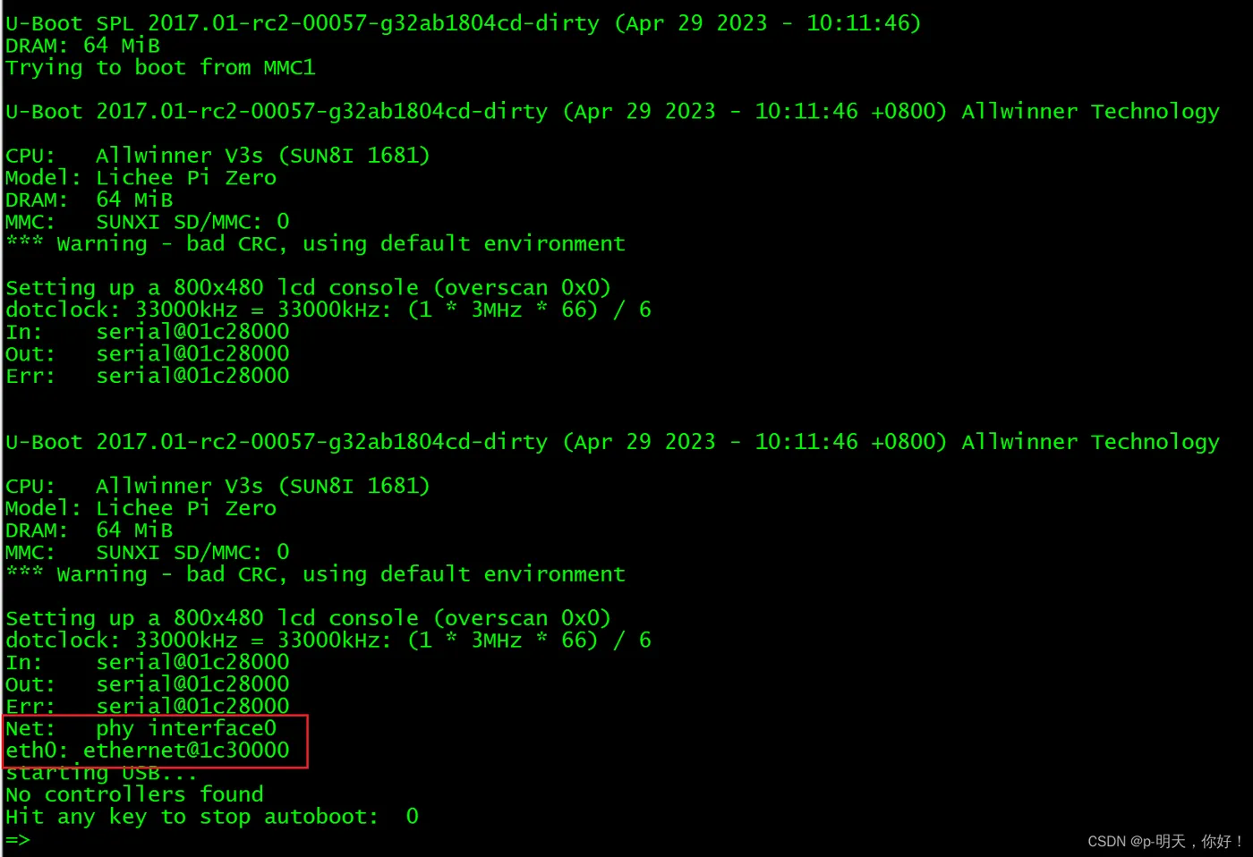 我使用的 uboot 是 2017.01 版本的,U-Boot 2017 已经支持了 sun8i-emac 的驱动,只需要在编译时选上并且修改 dts 就行。