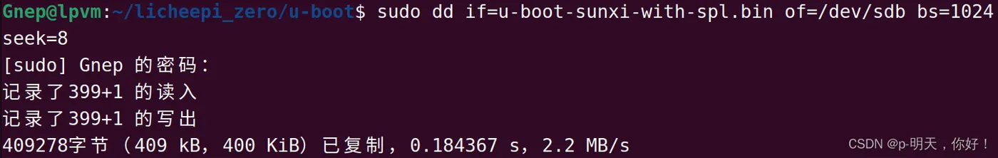 sudo dd if=u-boot-sunxi-with-spl.bin of=/dev/sdb bs=1024 seek=8