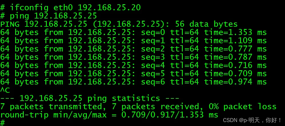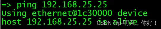 ifconfig eth0 192.168.25.20 ping 192.168.25.25