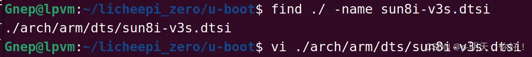 find ./ -name sun8i-v3s-licheepi-zero.dts vi ./arch/arm/dts/sun8i-v3s-licheepi-zero.dts