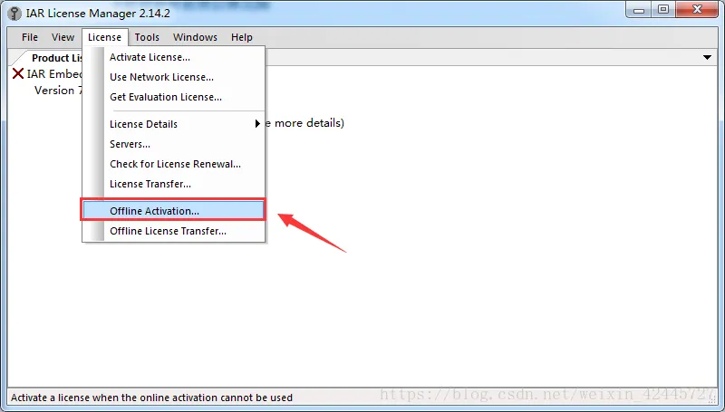 3.使用离线激活方式:License -> Offline Activation进入离线激活界面。