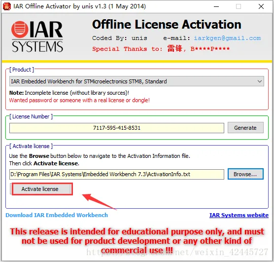 至此,注册已经完成了。 IAR软件的注册过程相比Keil要复杂一些。