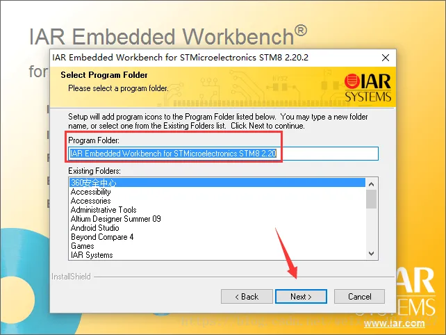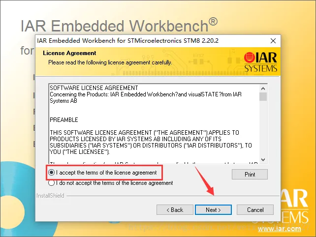 2、点击Install IARM Embeded Workbench for STMicroelctronics STM8