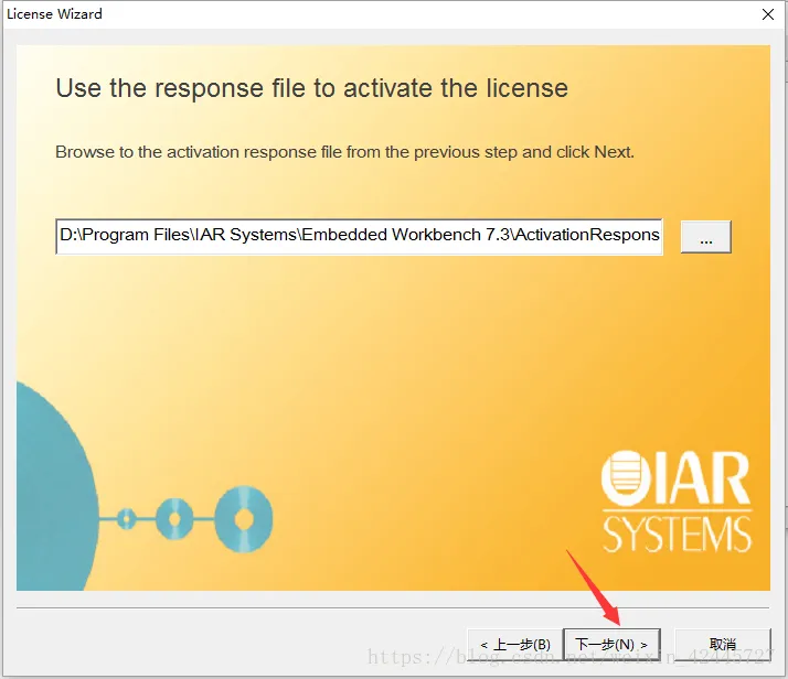 11.回到软件注册界面,打开上一步生成的“ActivationResponse.txt”的文件,点击“下一步”