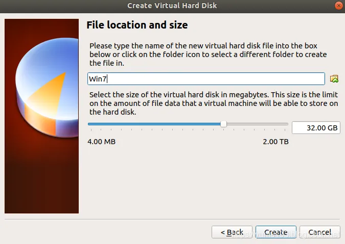 5、虚拟硬盘大小自行设置,比喻32G,点击创建。到这里已经创建好了虚拟机