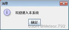 JOptionPane.showMessageDialog(null, "欢迎进入本系统");