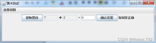 编写一个算术测试小软件,用来训练小学生的算术能力。程序有3个类组成,其中Teacher类的对象充当监视器,负责给出算术题目,并判断回答者的答案是否正确;ComputerFrame类的对象负责为算术题目提供视图,比如用户可以通过ComputerFrame对象提供的GUI界面看到题目,并通过改GUI界面给出题目的答案;MailClass是软件的主类。