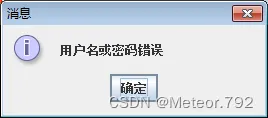 3、用户名为admin密码为123456,则给出如下提示,并进入下个窗体