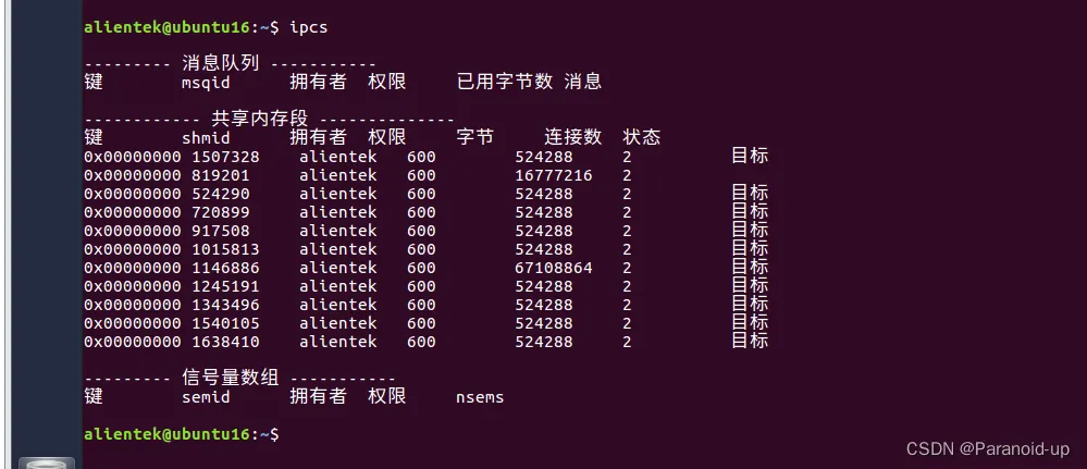- ipcs命令用于查看系统中的IPC对象