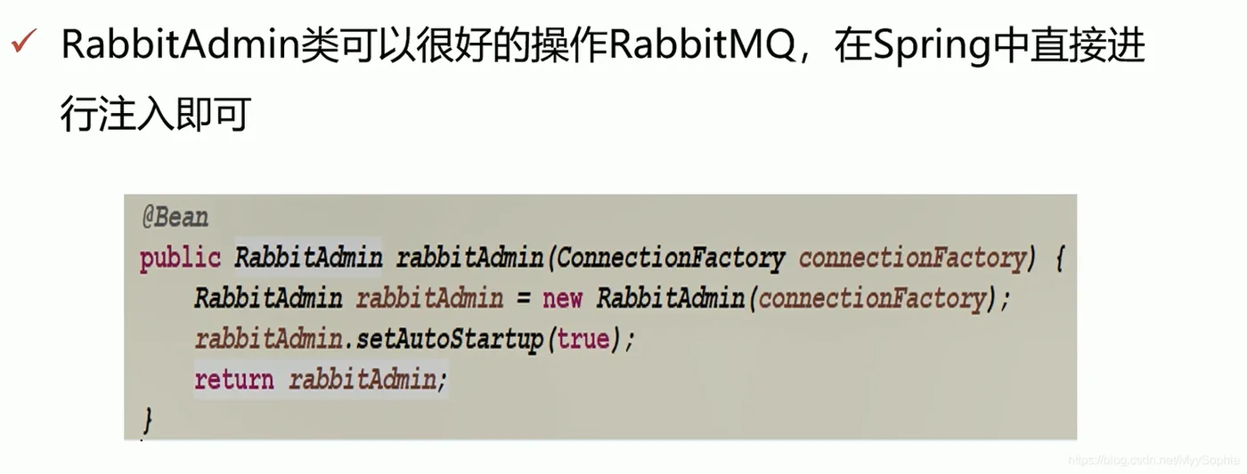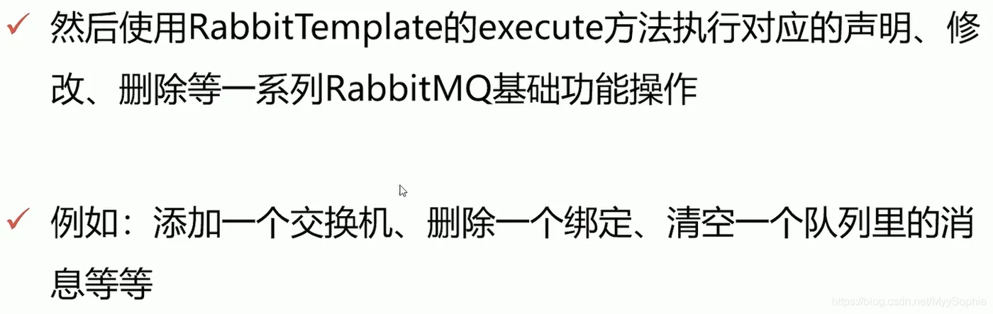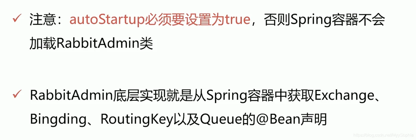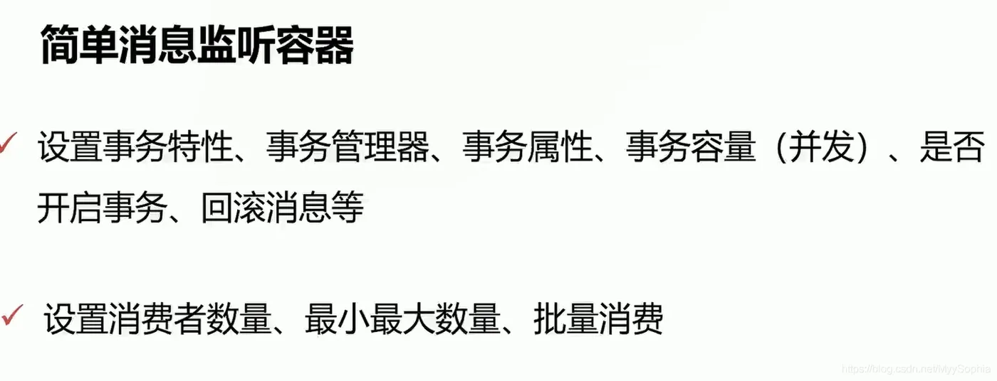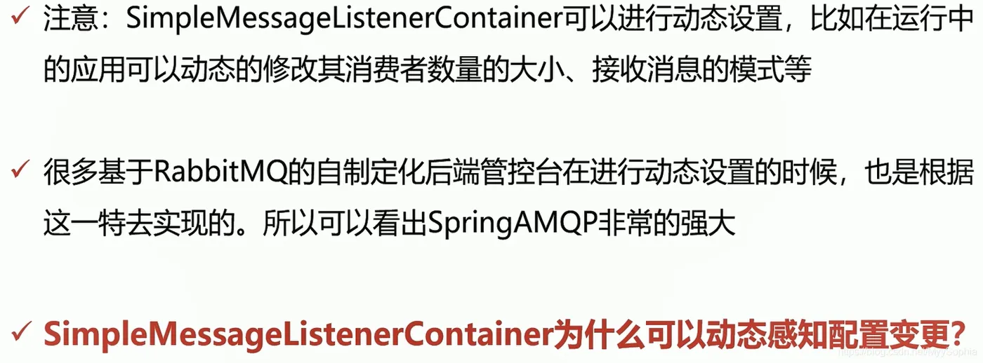 /** * 1 适配器方式. 默认是有自己的方法名字的:handleMessage // 可以自己指定一个方法的名字: consumeMessage // 也可以添加一个转换器: 从字节数组转换为String MessageListenerAdapter adapter = new MessageListenerAdapter(new MessageDelegate()); adapter.setDefaultListenerMethod("consumeMessage"); adapter.setMessageConverter(new TextMessageConverter()); container.setMessageListener(adapter); */ /** * 2 适配器方式: 我们的队列名称 和 方法名称 也可以进行一一的匹配 * MessageListenerAdapter adapter = new MessageListenerAdapter(new MessageDelegate()); adapter.setMessageConverter(new TextMessageConverter()); Map<String, String> queueOrTagToMethodName = new HashMap<>(); queueOrTagToMethodName.put("queue001", "method1"); queueOrTagToMethodName.put("queue002", "method2"); adapter.setQueueOrTagToMethodName(queueOrTagToMethodName); container.setMessageListener(adapter); */