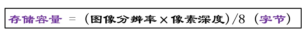 2. 背公式:存储容量(b) = (图像分辨率 * 像素深度) / 8