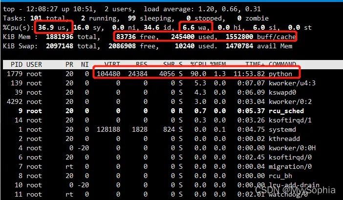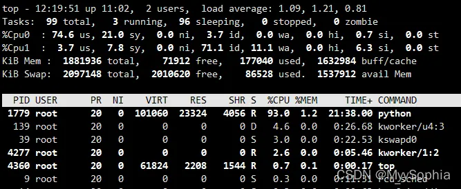 进程部分有一个 python 进程的 CPU 使用率稍微有点高。