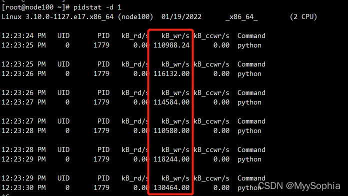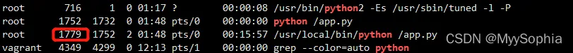 我们只好综合 strace、pidstat 和 iostat 这三个结果来分析了。很明显,你应该发现了这里的矛盾:iostat 已经证明磁盘 I/O 有性能瓶颈,而 pidstat 也证明了,这个瓶颈是由1779号进程导致的,但 strace 跟踪这个进程,却没有找到任何 write 系统调用。这就奇怪了。难道因为案例使用的编程语言是 Python ,而 Python 是解释型的,所以找不到?还是说,因为案例运行在 Docker 中呢?