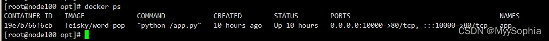 docker run --name=app -p 10000:80 -itd feisky/word-pop