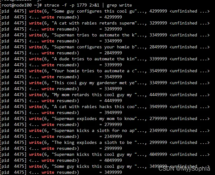刚开始使用strace -p pid一直看不到write的系统调用。