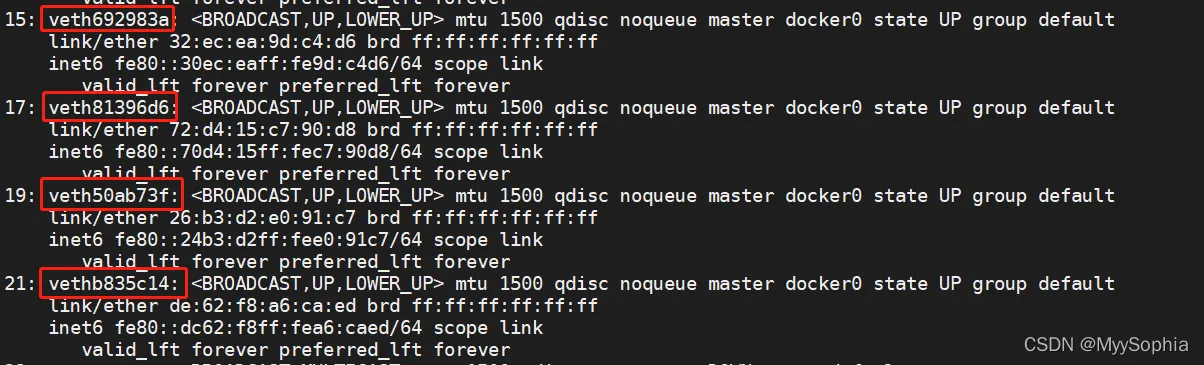 2、每启动一个容器linux主机多了一个虚拟网卡。