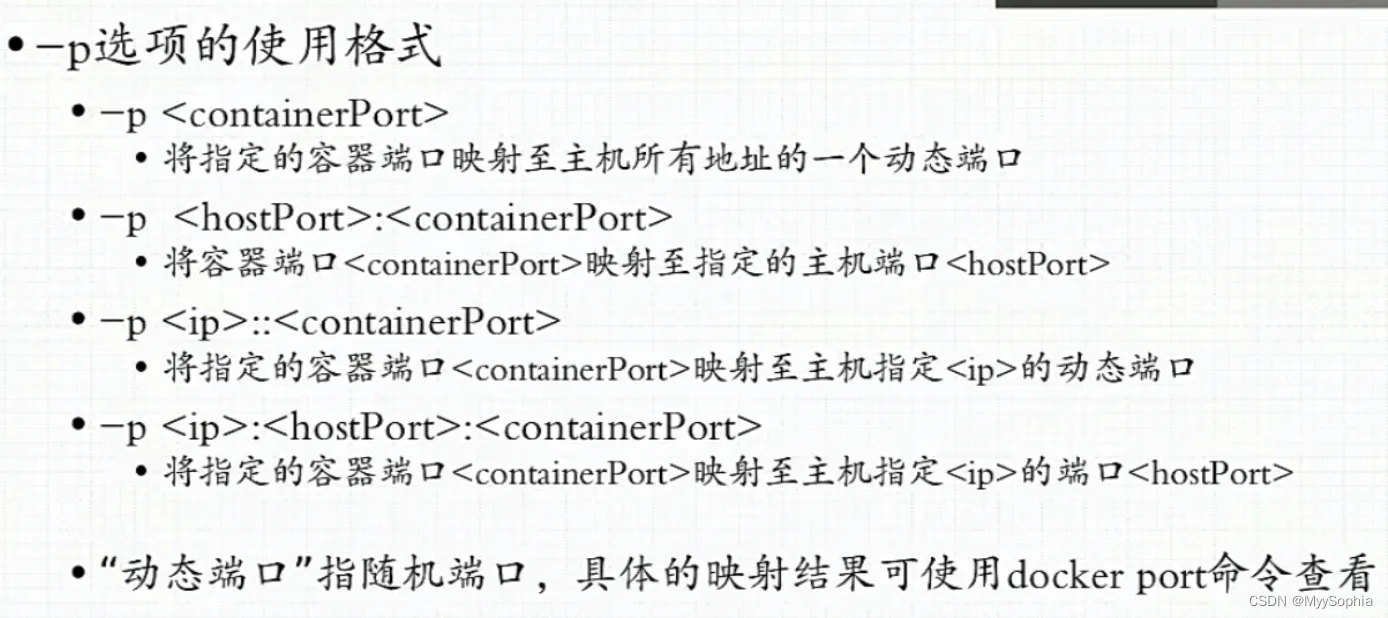 -P 不指定端口,暴露构建镜像时的默认端口,例如Nginx,不适用任何端口暴露,宿主机是无法访问的,可以使用-P 参数无需指定端口,宿主机通过80端口可访问nginx,因为nginx默认暴露的是80端口。