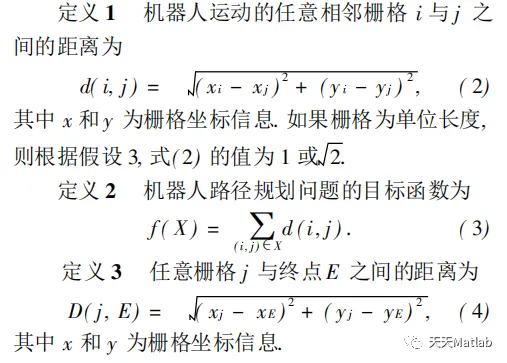 - 适应度函数:定义适应度函数,用于评估每个个体的适应度。在路径规划中,适应度可以根据路径的长度、时间、能耗等指标进行评估。