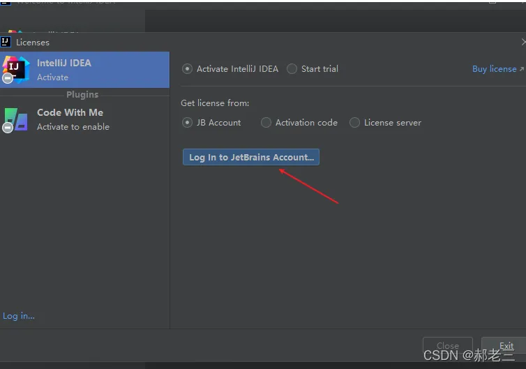3:注册账号并进行登陆 打开我们安装的IDEA后,在这里进行登陆,如果没有账号的话,需要通过邮箱进行注册。 它会给你发一封带有注册超链接的邮件,我这里已经注册过了,所以发的不一样,大家根据邮件内容进行注册就可以了。