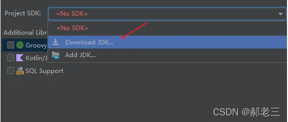 点击Java ---- Project SDK ---Download JDK,进行JDK的下载安装