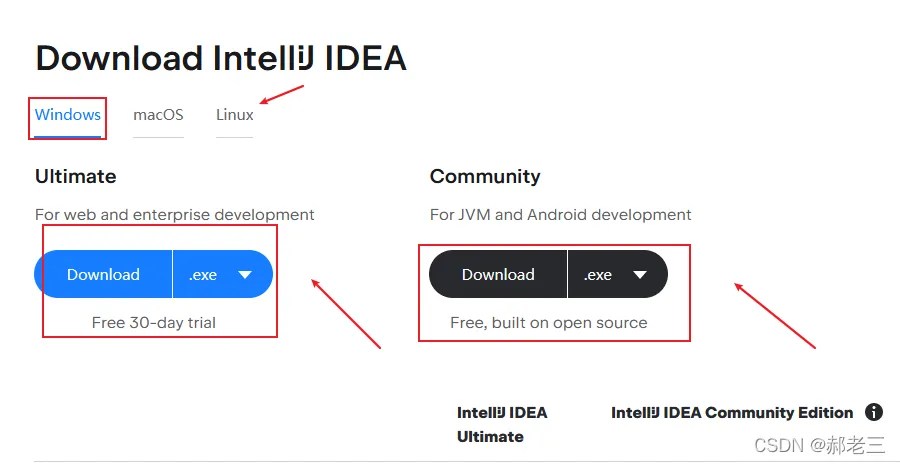 官网地址:IDEA官网地址。进去之后点击Download,进行下载。 这里可以选择不同的版本进行下载。大家可以根据自己的需求进行下载。