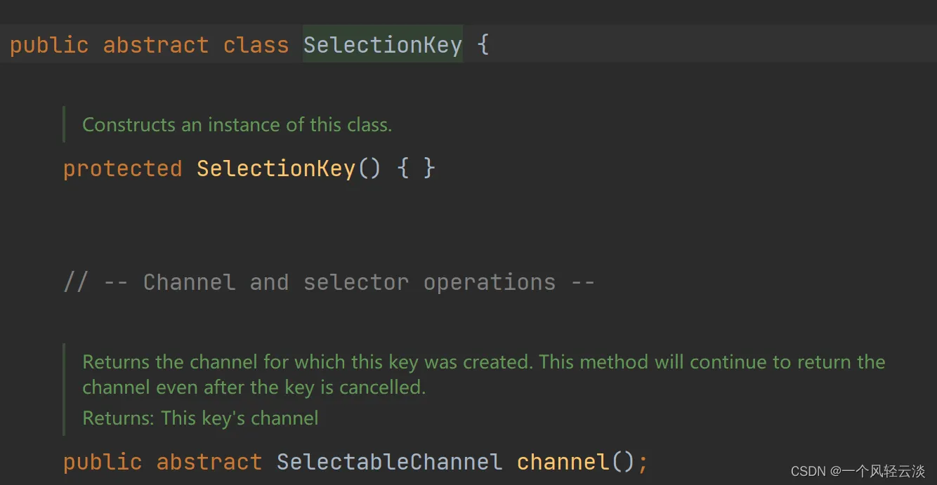 (2)SelectableChannel 类提供了实现通道的可选择性所需要的公共方法。它是所有 支持就绪检查的通道类的父类。所有 socket 通道,都继承了 SelectableChannel 类 都是可选择的,包括从管道(Pipe)对象的中获得的通道。而 FileChannel 类,没有继 承 SelectableChannel,因此是不是可选通道。