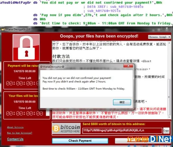 告知受害者没有付款或者病毒作者没有确认,最佳的确认时间是GMT时间上午9点到上午11点。