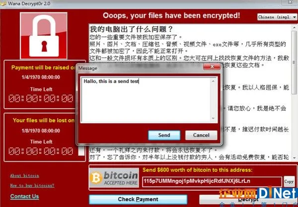 Contact Us点击后会弹出一个文本框,用于联系病毒作者