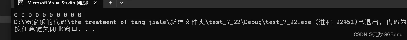 #include<stdio.h> #include<stdlib.h> int main() { int* p = (int*)calloc(10, sizeof(int)); if (p == NULL) { perror("Calloc"); return 1; } int i = 0; for (i = 0; i < 10; i++) { printf("%d ", *(p+i)); } free(p); p = NULL; return 0; }