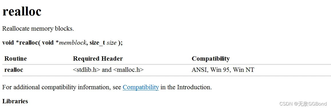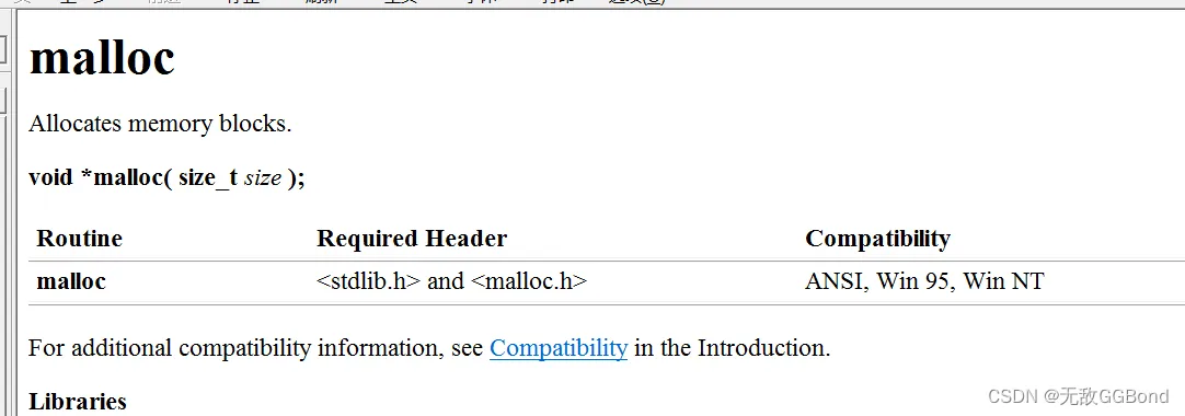 返回值的类型是 void* ,所以malloc函数并不知道开辟空间的类型,具体在使用的时候使用者自己来决定。 - 如果参数 size 为0,malloc的行为是标准是未定义的,取决于编译器。