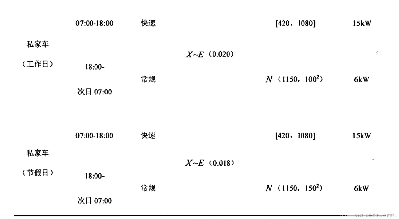 该表给出了各用途电动汽车在建立充电负荷预测计算时需要的参数: