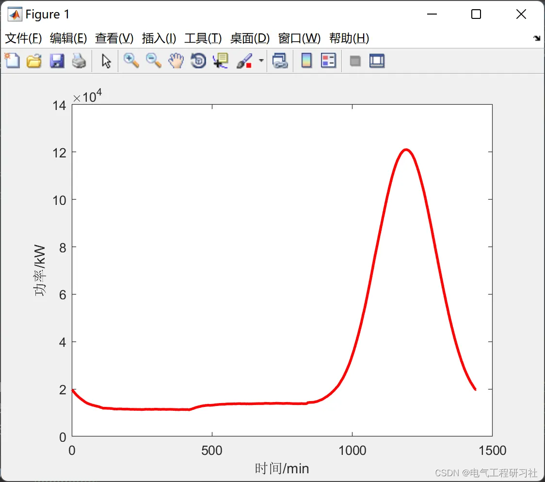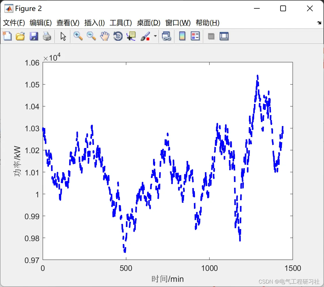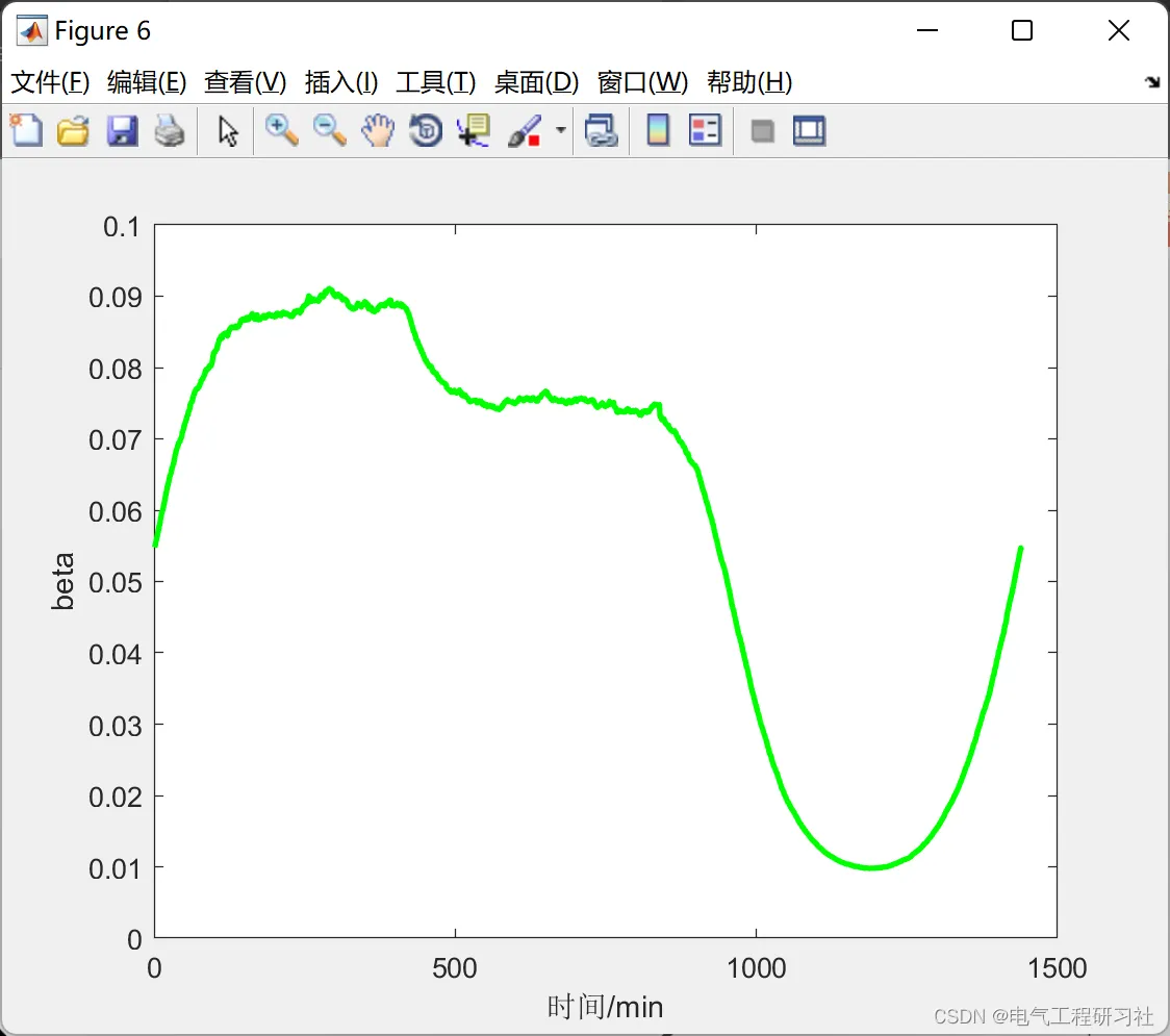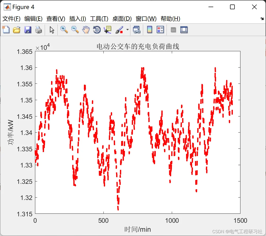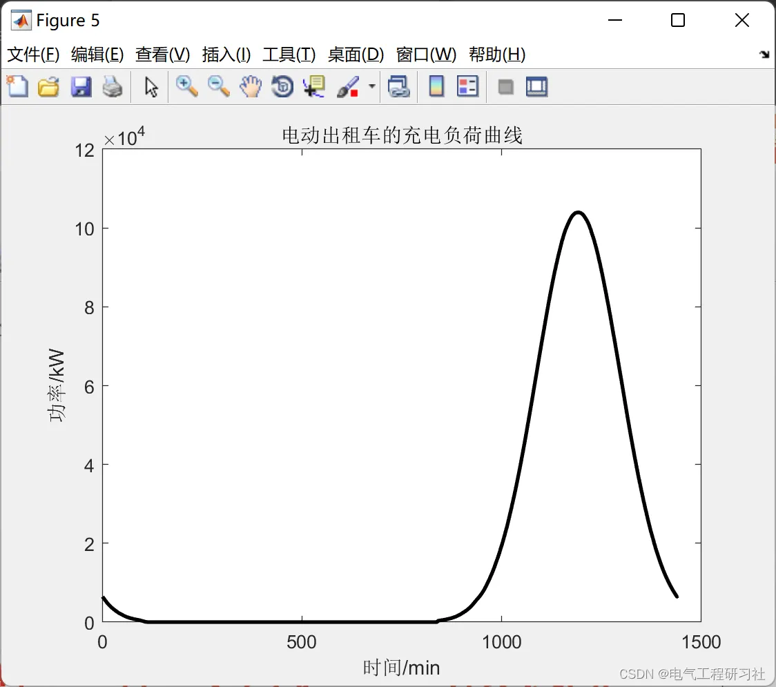 %% 私家车负荷预测 for n=1:1:N Pt1=zeros(1,1440); %周一到周日 for i=1:1:N1 Ts=unifrnd( 1,7,1,1); Ts=round(Ts); %% ============工作日情况============ if(Ts>=1&&Ts<=5) %Mon---Fri ds=exprnd(50.00,1,1); %指数分布X~E (0.020);1/0.02=50[期望E(x)] if(ds>=180) ds=180; end if(ds<=0) ds=0; end soc1=1-(ds./dm(1)); %(4-1) Ts1=unifrnd(1,1440,1,1); %% ============工作日情况快充=========== if(Ts1>=420&&Ts1<=1080) %时间7:00--18:00 ts2=unifrnd(420,1080,1,1); %均匀分布:[420,1080] ts2=round(ts2); %对充电时长取整 ts3=( 1-soc1).*40*60/Ps(2); %T ts3=round(ts3); %对充电时长取整 k=ts2+ts3; %(4-3)t1=t2+T if k>1440 %如果充电结束时间大于24时 k=k-1440; Pt1(1:k)=Pt1(1:k)+Ps(2); %# 清晨充电 Pt1(ts2:1440)=Pt1(ts2:1440)+Ps(2); %晚上24时前充电 else %如果充电结束时间没有过24时,无需在清晨充电 Pt1(ts2:k)=Pt1(ts2:k)+Ps(2); % 充电时段加上充电功率 end %% ============工作日情况慢充=========== else %时间18:00--7:00 ts2=normrnd( 1150,100,1,1); %N (1150,100^2) ts2=round(ts2); if(ts2<=1) ts2=1; end ts1=(1-soc1).*40*60/Ps(1); ts1=round(ts1); k=ts1+ts2; if k>1440 k=k-1440; Pt1(1:k)=Pt1(1:k)+Ps(1); Pt1(ts2:1440)=Pt1(ts2:1440)+Ps(1); else Pt1(ts2:k)=Pt1(ts2:k)+Ps(1); end end end %% =======非工作日情况========= if(Ts>=6&&Ts<=7) ds=exprnd(55.55,1,1); %X~E(0.018);1/0.018=55.55 if (ds>=180) ds=180; end if (ds<=0) ds=0; end soc1=1-ds./dm(1); Ts1=unifrnd(1,1440,1,1); %% ======非工作日情况快充===== if(Ts1>=420&&Ts1<=1080) %时间7:00--18:00 ts2=unifrnd(420,1080,1,1); %均匀分布:[420,1080] ts2=round(ts2); ts3=(1-soc1).*40*60/Ps(2); ts3=round(ts3); k=ts2+ts3; if k>1440 k=k-1440; Pt1(1:k)=Ptl(1:k)+Ps(2); Pt1(ts2:1440)=Pt1(ts2:1440)+Ps(2); else Pt1(ts2:k)=Pt1(ts2:k)+Ps(2); end %% ======非工作日情况慢充========= else %时间18:00--7:00 ts2=normrnd(1150,150,1,1); ts2=round(ts2); if (ts2<=1) ts2=l; end ts1=(1-soc1).*40*60/Ps(1); ts1=round(ts1); k=ts1+ts2; if k>1440 k=k-1440; Pt1(1:k)=Pt1(1:k)+Ps(1); Pt1(ts2:1440)=Pt1(ts2:1440)+Ps(1); else Pt1(ts2:k)=Pt1(ts2:k)+Ps(1); end end end Pt1(1:1440)=Pt1(1:1440); end %% 公交车负荷预测 Pt2=zeros(1,1440); for i=1:1:N2 dg=unifrnd(150,200,1,1); %日行驶里程数 %% ========上下限限制====== if(dg>=200) dg=200; end if (dg<-0) dg=0; end soc2=1-(dg./dm(2)); tg1=(1-soc1).*300*60/Pg; tg1=round(tg1); tg2=unifrnd(1,1440,1,1); tg2=round(tg2); kg=tg1+tg2; if (kg>1440) kg=kg-1440; Pt2(1:kg)=Pt2(1:kg)+Pg; Pt2(tg2:1440)=Pt2(tg2:1440)+Pg; else Pt2(tg2:kg)=Pt2(tg2:kg)+Pg; end Pt2(1:1440)=Pt2(1:1440); end %% ========结束==========
