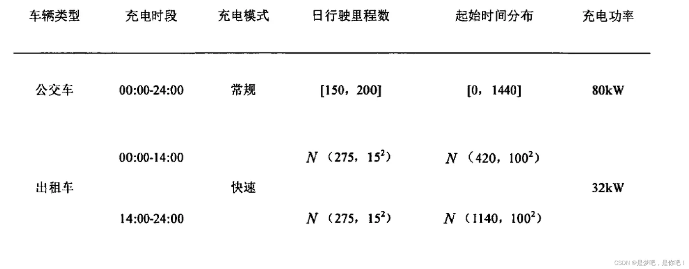 电动出租车一般进行快速充电,日行驶里程数服从均匀分布,起始充电时间服从正态随机分布;