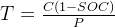 计算电动汽车充电所需时间T,可以通过将电池容量C、起始荷电状态SOC和充电功率Р求