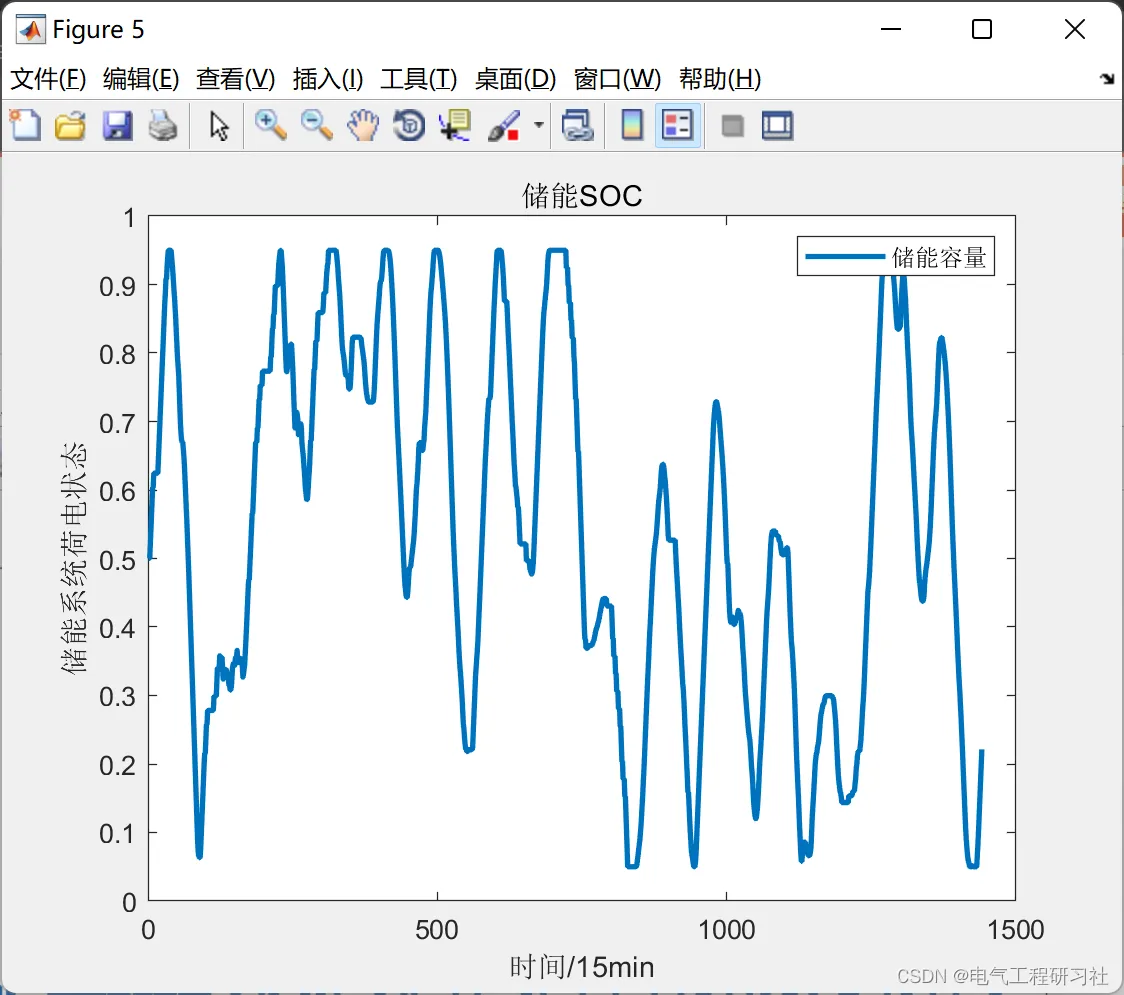 SOC表示储能系统在一天调度周期内的剩余电量的变化图