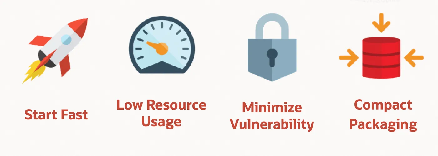 总结起来就是这里的关键几项:更快的启动个速度、更少的资源占用、更小的安全漏洞风险、更紧凑的二进制包体积。解决 Java 应用在 Sererless 等云计算应用场景中面临的突出问题。