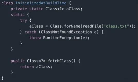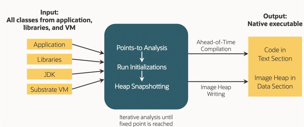 GraalVM 在编译构建期间就会以 main 函数为入口,完成对应用代码的静态分析