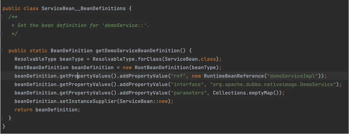 Dubbo AOT 做的事情与 Spring AOT 非常类似,只不过 Dubbo AOT 是专门针对 Dubbo 框架特有的使用方式进行预处理,这包括: