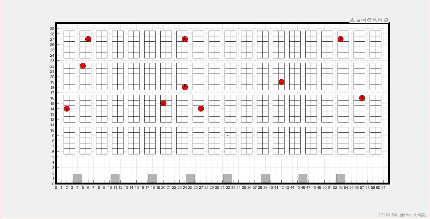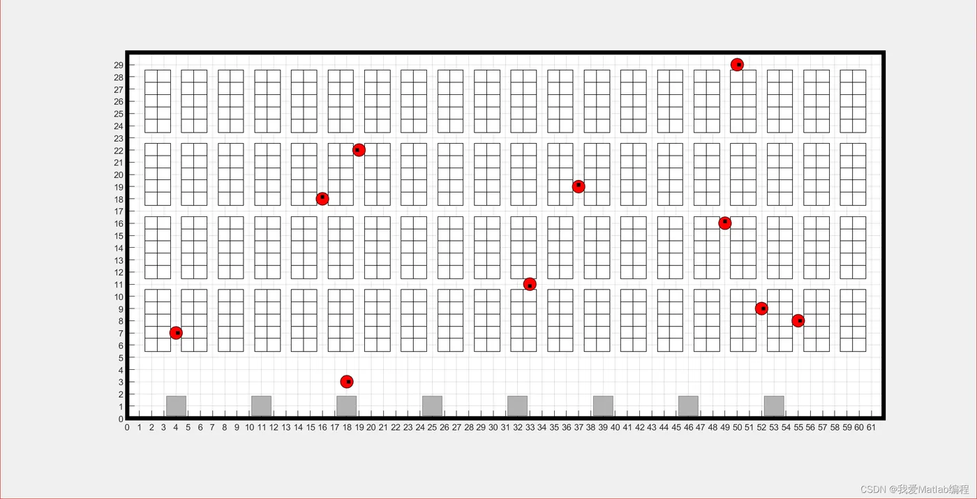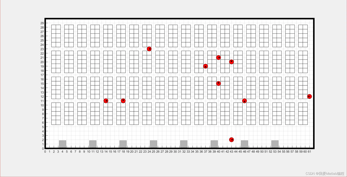 %% Initialize clear; clc; xlength=61; ylength=29; robotNum=10; podNum=800; depotNum = 8; taskNum = robotNum; xy2rc=@(x,y)[ylength+1-y;x]; rc2xy=@(r,c)[c;ylength+1-r]; sz=get(0,'screensize'); sz(1,2) = 80; sz(1,4) = 950; h=figure('outerposition',sz); assignin('base','h',h); %in case of any callback errors. hold on; grid on; set(gca,'xtick',0:1:xlength); set(gca,'ytick',0:1:ylength); axis equal; axis([0 xlength+1 0 ylength+1]); axis manual; % stores current states globalTime = 1; AllRobotState = zeros(robotNum,3); AllPodState = zeros(podNum,3); MapOccupancy = zeros(ylength,xlength); RobotOccupancy = zeros(ylength,xlength); [RobotStates,PodStates,DepotStates,StorageOccupancy]=initialize(xlength,ylength,robotNum,podNum,depotNum); PodOccupancy = StorageOccupancy; MapOccupancy = MapOccupancy+PodOccupancy; %generate random tasks TaskCell=cell(taskNum,1); for i=1:taskNum task=Task; task.PodID=randi([1 podNum]); task.StationID=randi([1 depotNum]); task.ProcessTime=randi([5 20]); task.ReturnState = zeros(1,3); TaskCell{i,1}=task; end