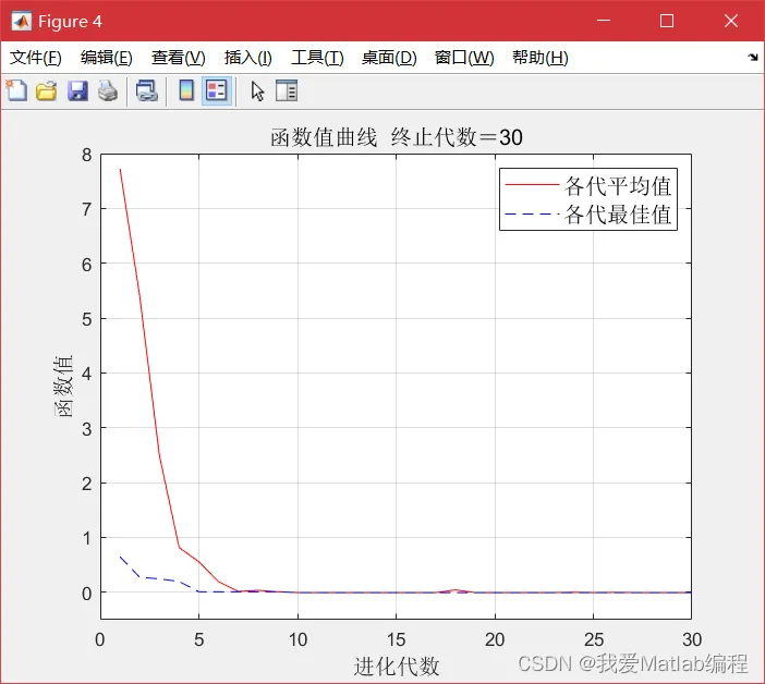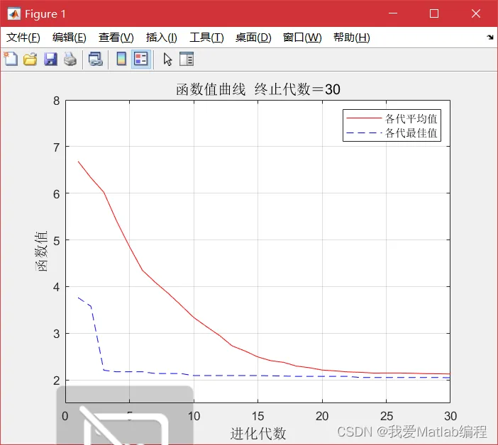 %% 清空环境 clc clear %% 遗传算法参数 maxgen=30; %进化代数 sizepop=100; %种群规模 pcross=[0.6]; %交叉概率 pmutation=[0.01]; %变异概率 lenchrom=[1 1 1 1 1]; %变量字串长度 bound=[0 0.9*pi;0 0.9*pi;0 0.9*pi;0 0.9*pi;0 0.9*pi]; %变量范围 %% 个体初始化 individuals=struct('fitness',zeros(1,sizepop), 'chrom',[]); %种群结构体 avgfitness=[]; %种群平均适应度 bestfitness=[]; %种群最佳适应度 bestchrom=[]; %适应度最好染色体 % 初始化种群 for i=1:sizepop individuals.chrom(i,:)=Code(lenchrom,bound); %随机产生个体 x=individuals.chrom(i,:); individuals.fitness(i)=fun(x); %个体适应度 end 完整代码见:链接:https://pan.baidu.com/s/12ug1JElcB3nO33oJoWsUvQ 提取码:2gg9