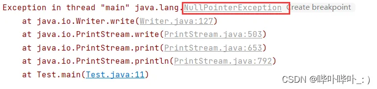 public static void main(String[] args) { char[] arr = null; System.out.println(arr); System.out.println("运行时异常--空指针异常"); }