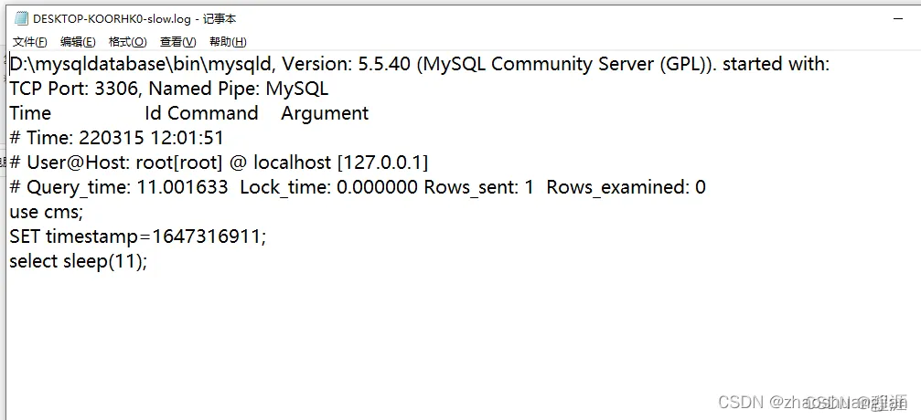 这里面记录了查询时间、发起查询的客户端、扫描行数、执行的sql语句等信息。