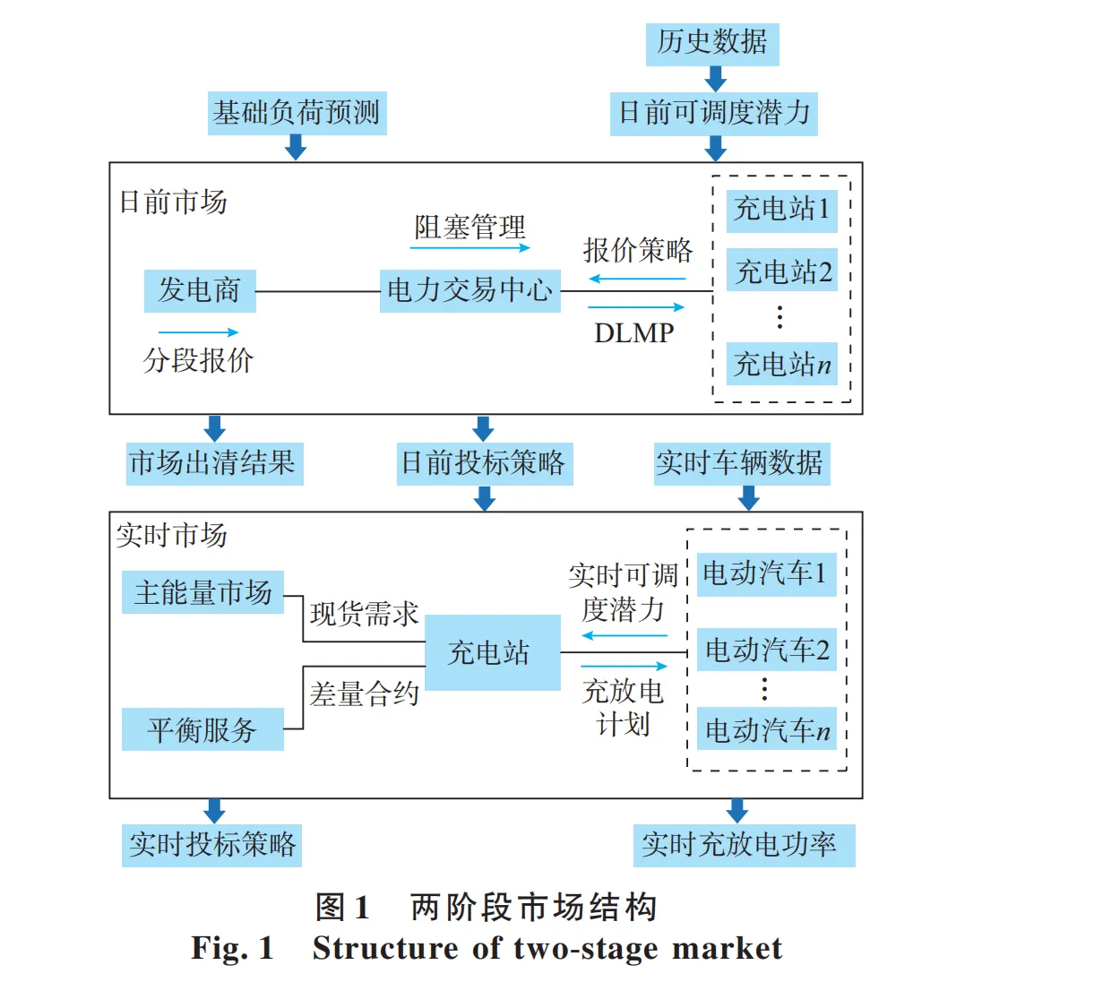 在当前阶段,电动汽车通常被视为即插即充的常规负荷,这浪费了其可观的储荷能力"。研究表明,非快充需求的电动汽车停靠时间远大于其充电时间[2,因此可通过充电站管理电动汽车的充放