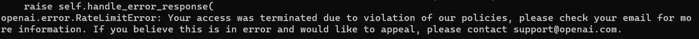 - API被OpenAI禁了的报错: