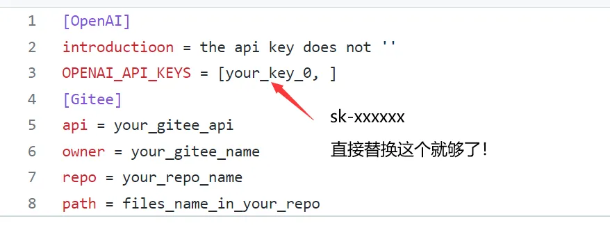 - 在apikey.ini中填入你的openai key。