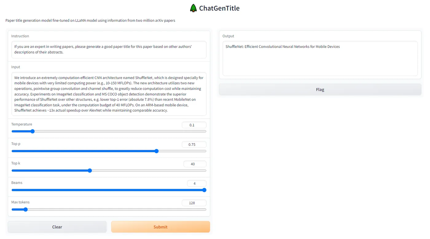 ChatGenTitle | 利用百万arXiv论文元信息训练出来的论文题目生成模型,根据论文摘要生成合适题目 | -- | -- | 原项目地址 |