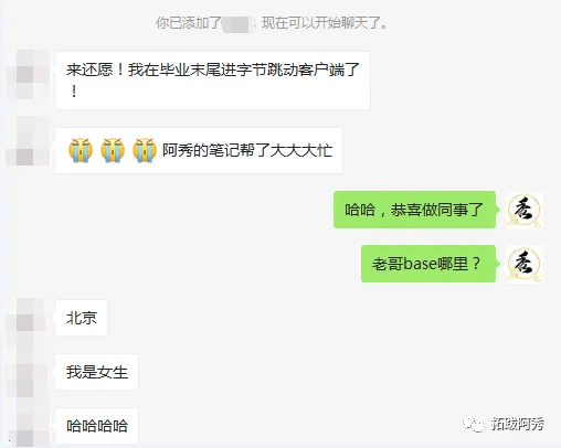 “来吧,有想来字节的欢迎后台联系阿秀,嘻嘻,保证靠谱!