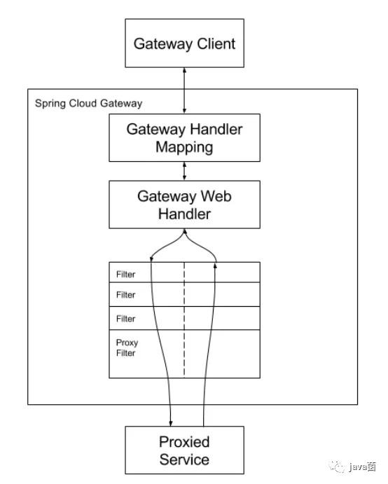 客户端向Spring Cloud Gateway发出请求。如果Gateway处理程序映射确定一个请求与路由相匹配,它将被发送到Gateway Web处理程序。这个处理程序通过一个特定于该请求的过滤器链来运行该请求。过滤器被虚线划分的原因是,过滤器可以在代理请求发送之前和之后运行逻辑。所有的 "前 "过滤器逻辑都被执行。然后发出代理请求。在代理请求发出后,"后 "过滤器逻辑被运行。
